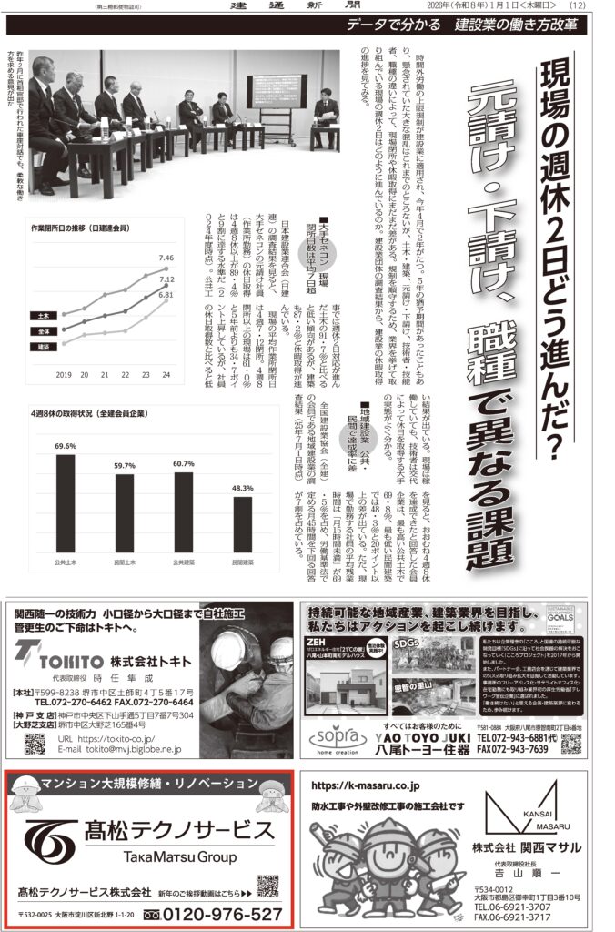 【メディア掲載/大阪版】「建通新聞」に令和8年新春特集号広告協賛しました