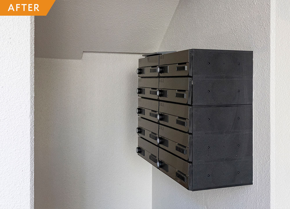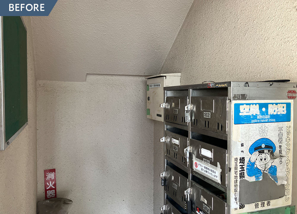 築45年鉄筋コンクリート造4階建ての賃貸マンションで大規模改修工事によって建物の資産価値を向上できた事例です。築年数の経過により、当初は建て替えを検討されていましたが、費用面から改修工事をご決断。外壁デザインを一新しただけではなく、歪んで開閉しづらくなったエントランスドアを交換しました。腐食が著しい屋上やバルコニーの手すりは次世代を見据えたアルミ製に全て交換し、定期的な塗装メンテナンスが不要で管理がしやすくなりました。また、宅配ボックス一体型の郵便ポストも新設し、入居者様のニーズに応えた改修を行いました。加えて、同時期に住戸のリフォーム工事を進めていたことで賃料アップも叶えながら満室経営が続いています。