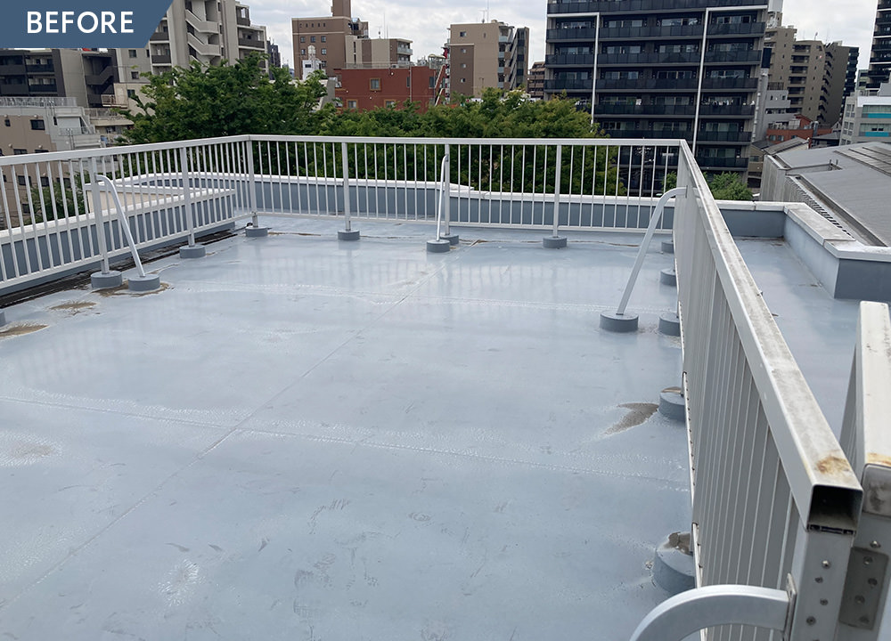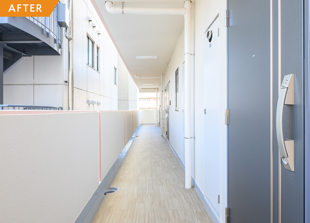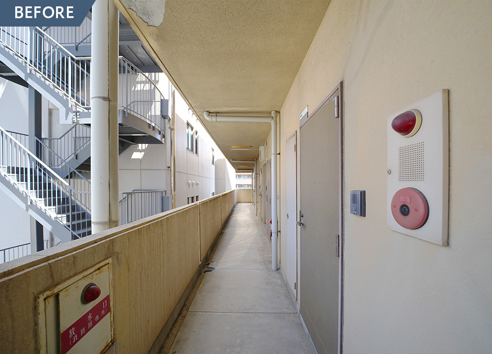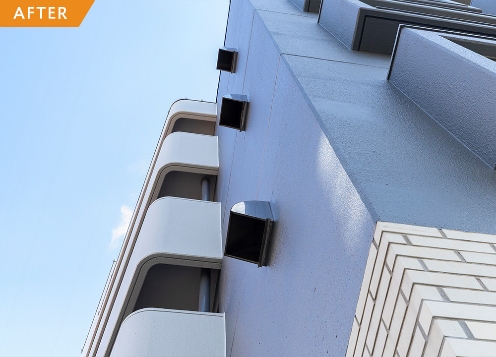 また、共用部の手すりに水はけを良くする金物を新たに設置。雨だれによる汚れを付きにくくすることで、雨水の侵入を予防し、建物を永く守ります。