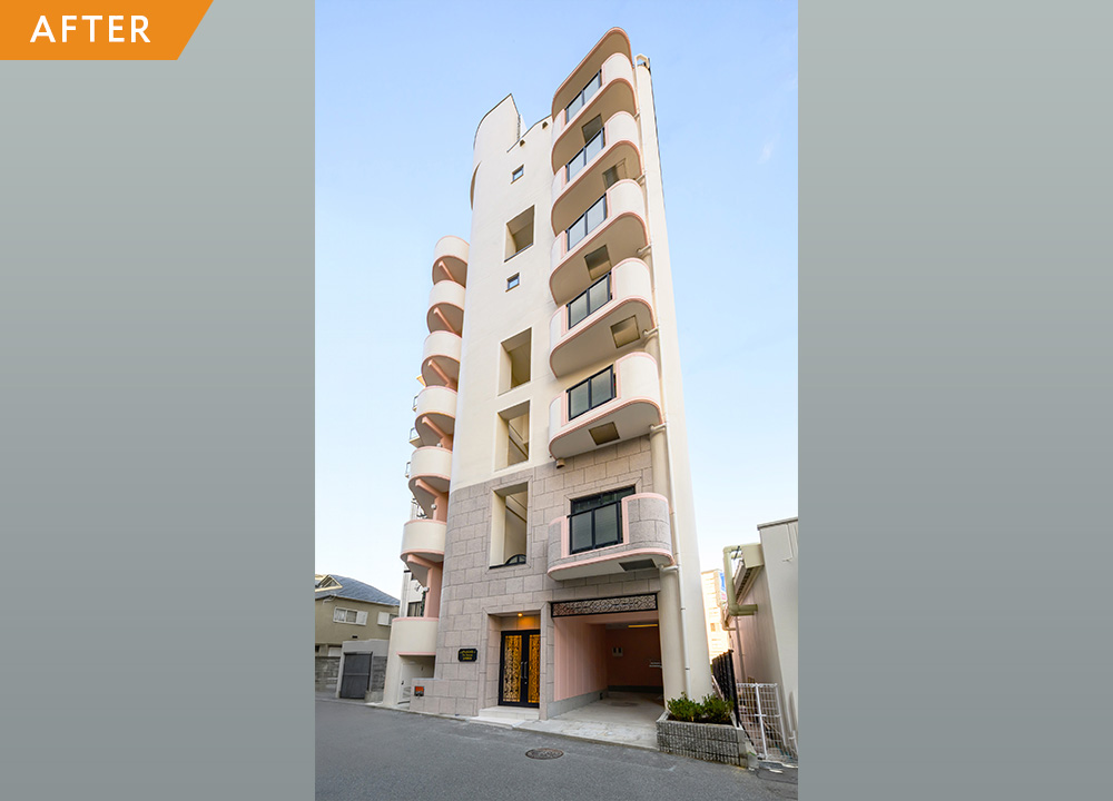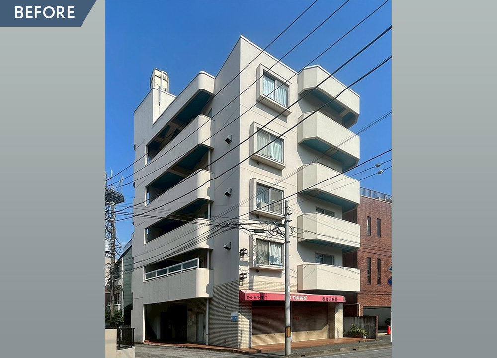 築47年鉄筋コンクリート造4階建ての店舗付賃貸マンションを改修した事例です。